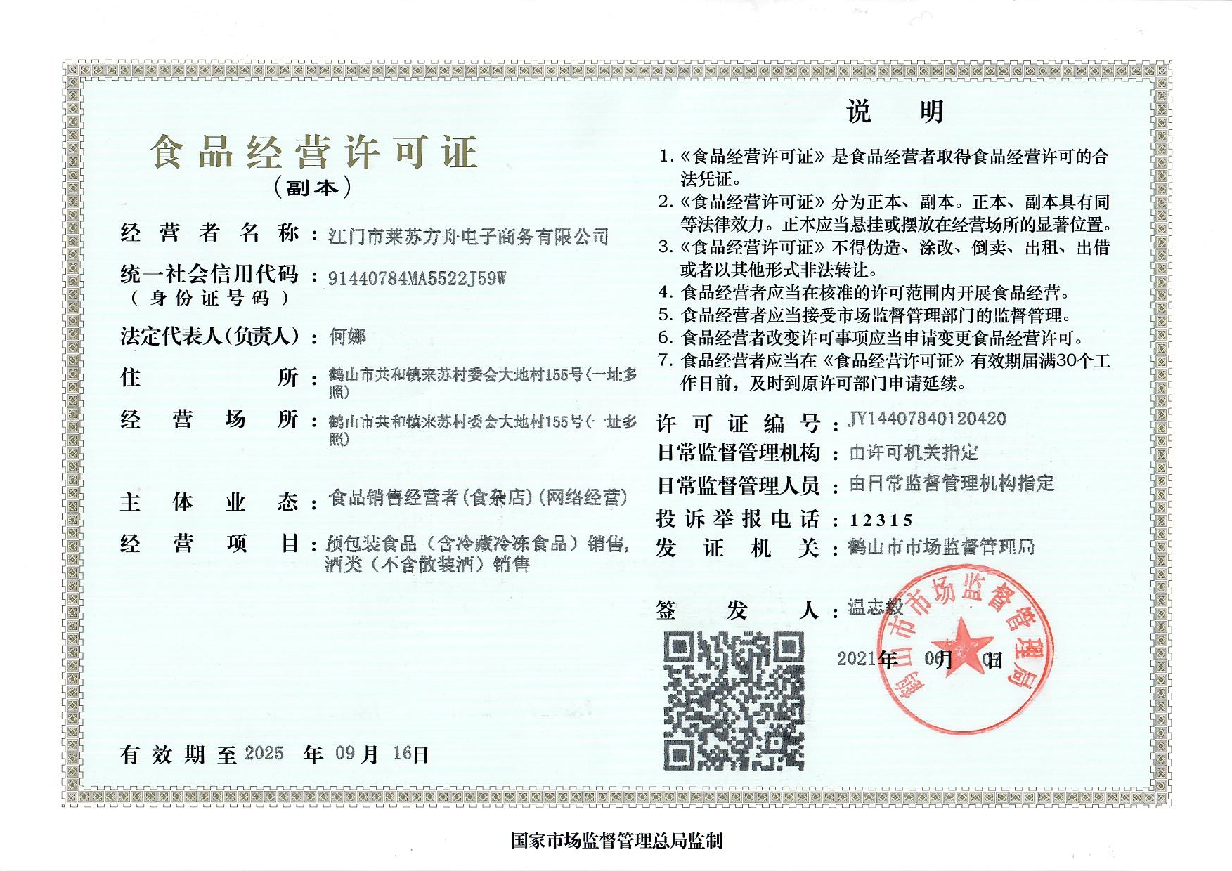 营业执照与食品经营许可证